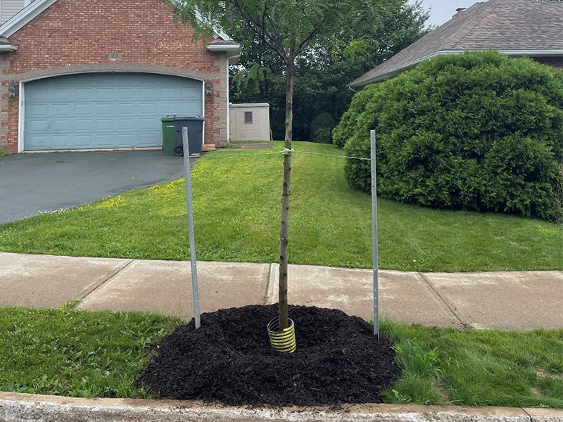 Do not place any material within 1.5m (5 feet) of the trunk of a public tree in the boulevard or over its root system as this will injure the tree. If you are unsure, please contact the Town to discuss your plans at 905-775-2162 ext. 5204.